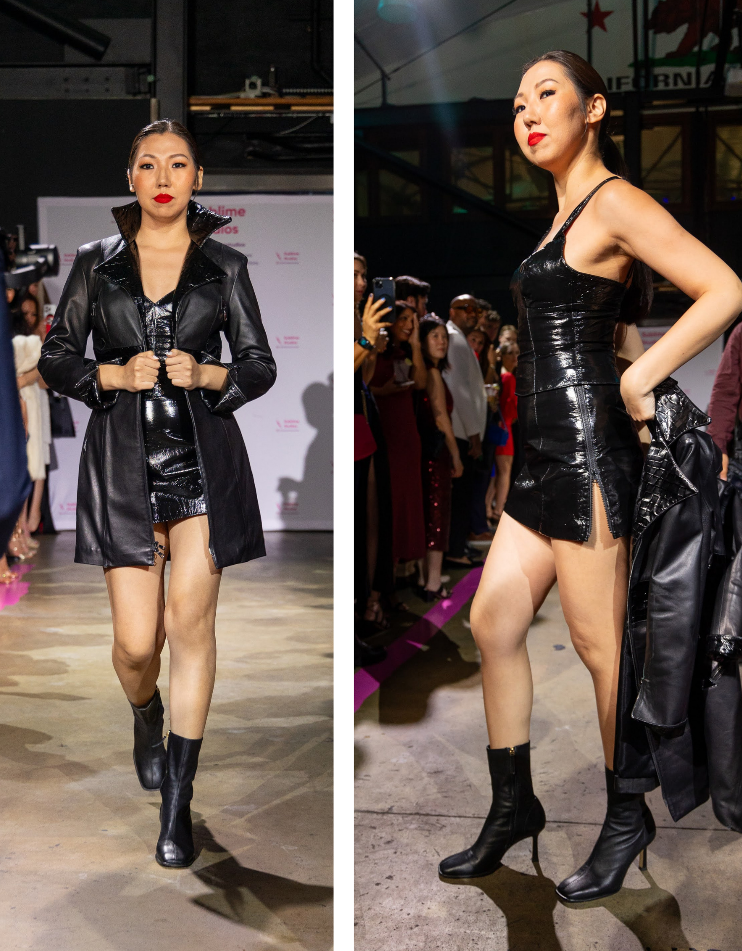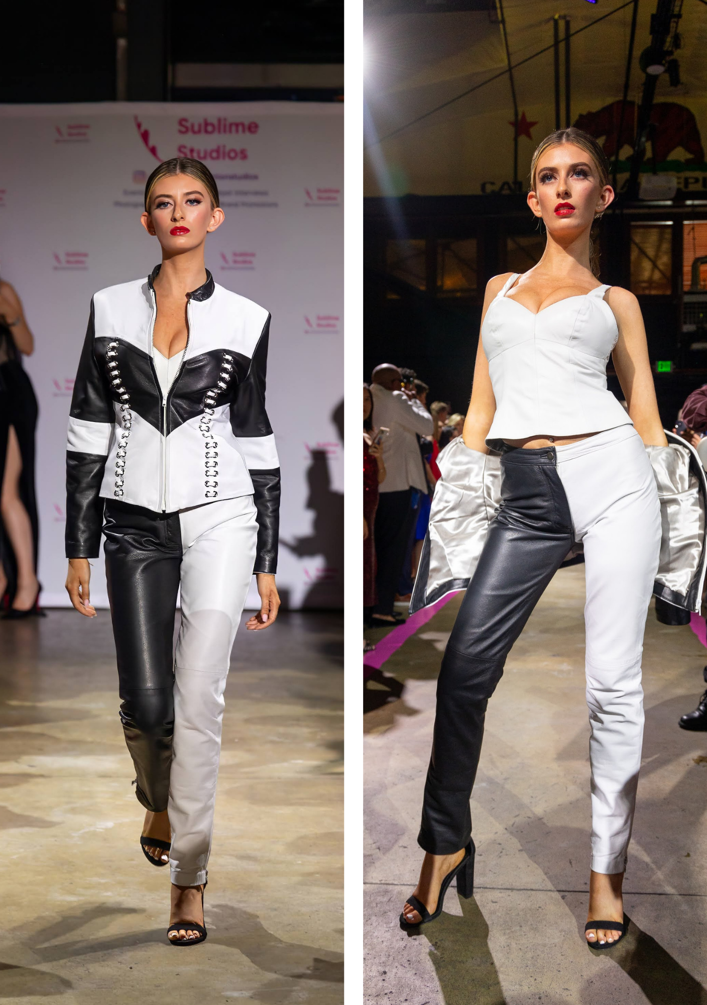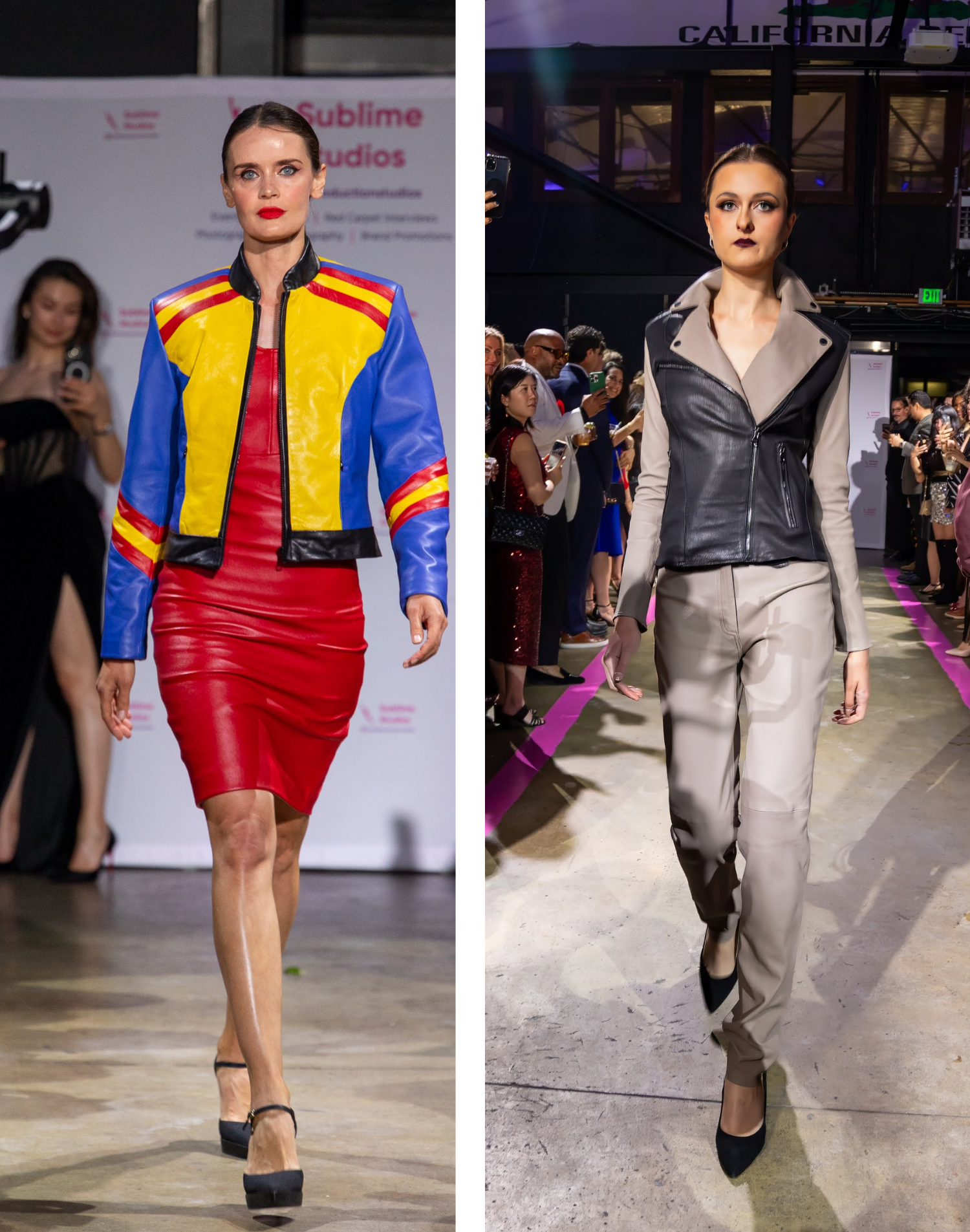 West Coast Leather entered the Sublime Avenue narrative in 2023, after a serendipitous introduction through Skip Pas’s daughter on social media. What began as a digital connection quickly evolved into creative kinship—sealed when Skip debuted his Hot Pink collection on our runway, featuring the unforgettable zebra-striped dress that has since become one of his most recognizable signatures: equal parts rebellion and refinement. That same show also cemented our partnership with another extraordinary force—Katya Rychkova of Katya Rich Beauty, a remarkable talent in the makeup world, accomplished business owner, and editor of her own magazine